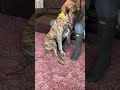 Preston is a huge lover he came into rescue with a female english mastiff and he is dog friendly.